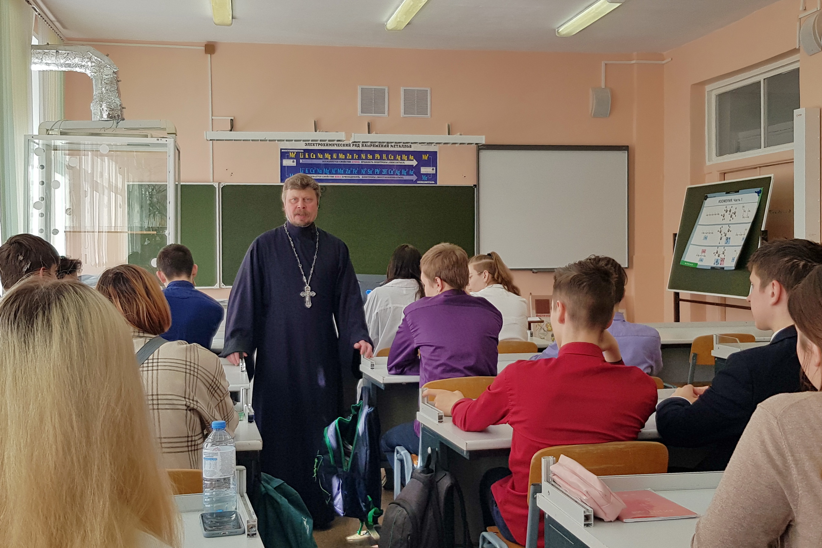 Протоирей Александр Лашков побеседовал с девятиклассниками северодвинской школы № 12 о развитии личностного потенциала.