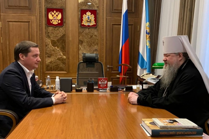 Митрополит Корнилий отметил высокий уровень взаимодействия духовной и светской властей в Архангельской области и выразил признательность Александру Витальевичу за поддержку епархиальных инициатив в сфере духовного развития Русского Севера.