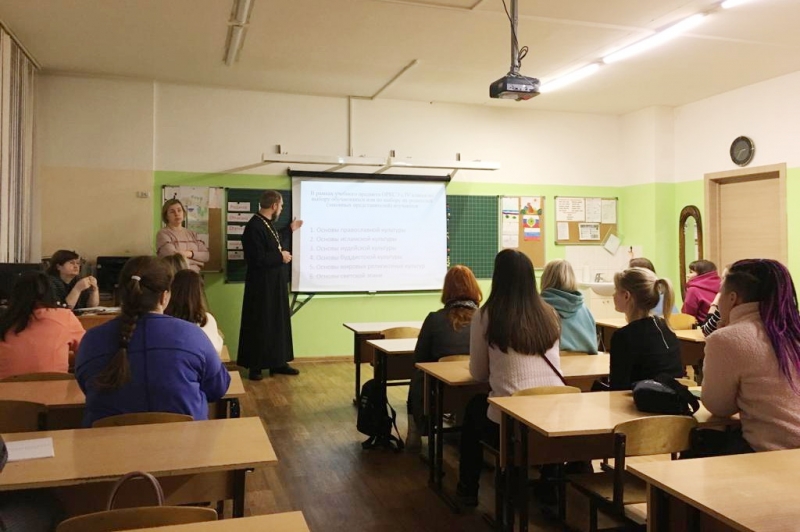 Клирики епархии посещают собрания родителей третьеклассников в школах Архангельска. Встречи посвящают выбору одного из модулей курса основ религиозной культуры и светской этики — «Основы православной культуры».