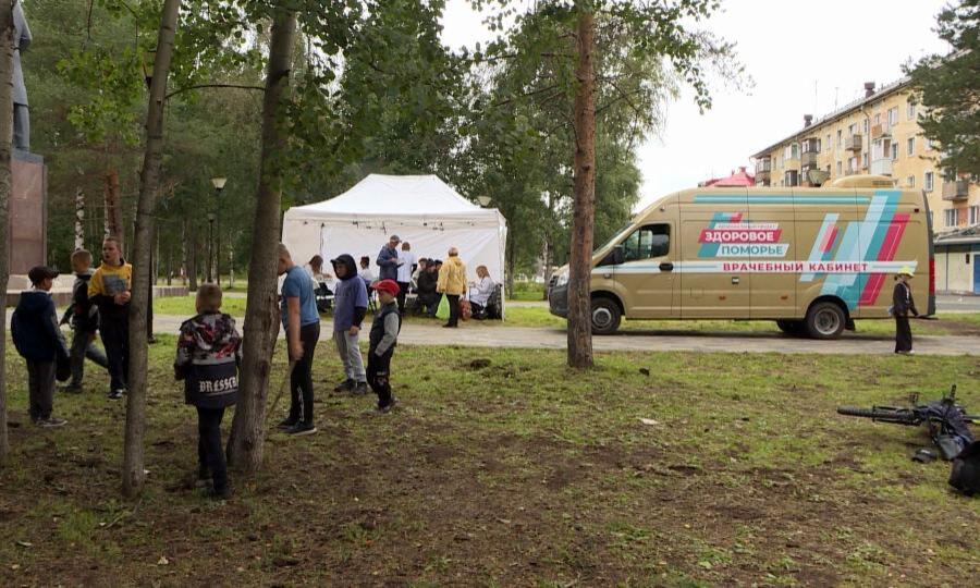 Акция "Мобильный пункт здоровья" - часть проекта "Здоровое Поморье", который реализует региональный минздрав при поддержке губернатора Архангельской области.
