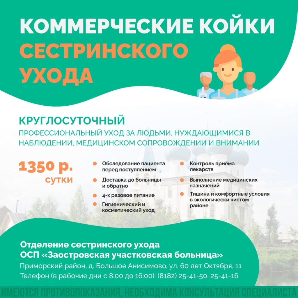 Не так страшна старость, как немощь и одиночество. Когда взрослые дети весь день на работе, внуки на учёбе, семья планирует отпуск, а за лежачими родственниками нужен уход, решение проблемы - специализированное Отделение сестринского ухода Заостровской участковой больницы в экологически чистом районе вблизи Архангельска.