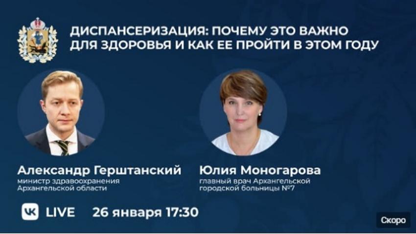 26 января в паблике «Архангельская область» пройдет традиционный брифинг, посвященный теме прохождения профилактических осмотров. Начало трансляции в 17:30.