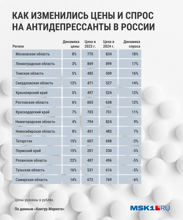 В 2024 году препараты стали покупать на 7% чаще, особенно в Москве и Санкт-Петербурге В 2024 году россияне стали чаще покупать антидепрессанты — спрос на них вырос на 7%.