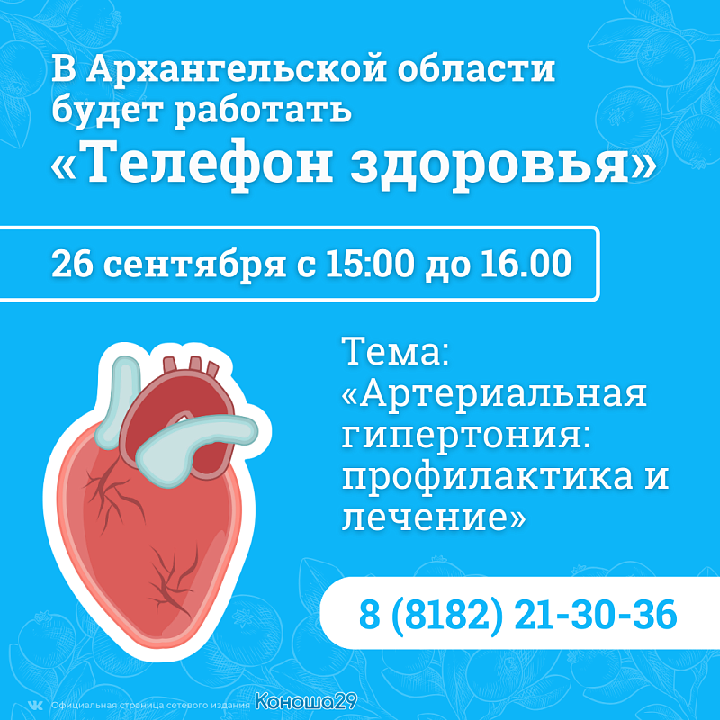 26 сентября с 15:00 до 16.00 будет работать «телефон здоровья» по теме «Артериальная гипертония: профилактика и лечение».