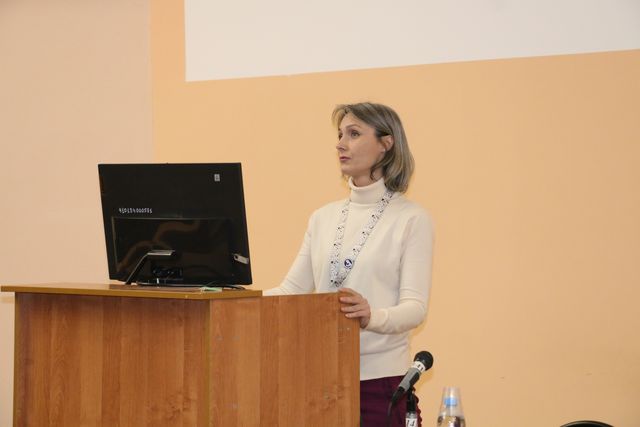 О важности темы донорства со студентами говорила Ольга Владимировна Макарова, медицинская сестра отдела комплектования донорских кадров Архангельской станции переливания крови.