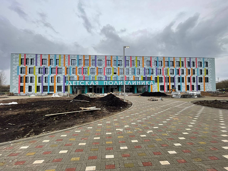 В данный момент строители завершают внутреннюю отделку: монтаж потолков и светильников, покраску стен, установку дверей, подключают отопление. Параллельно благоустраивают территорию и укладывают асфальт. Рядом с поликлиникой обустроят парковку на 38 мест, а также зоны для прогулок.