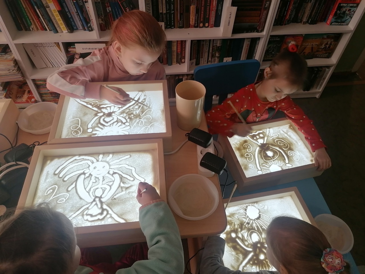 В Привокзальной библиотеке № 4 продолжаются занятия по песочной анимации в рамках развивающей программы.
