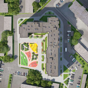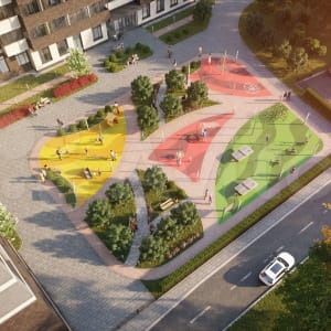 • благоустроенный закрытый двор: велопарковки, зоны отдыха со скамейками и малыми архитектурными формами, озеленение территории, зона street workout: уличные тренажеры и турники, разновозрастные детские площадки с антитравматическим покрытием;