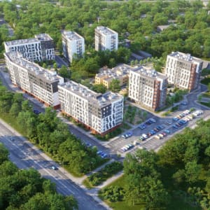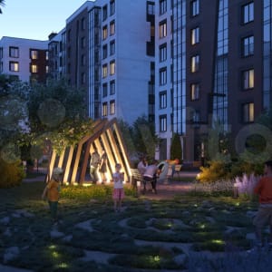 • благоустроенный с ландшафным дизайном: «Скандинавский лабиринт», «Камни викингов», «Тропа здоровья», арки с подсветкой, велопарковки, зоны отдыха со скамейками и малыми архитектурными формами, озеленение территории, зона street workout: уличные тренажеры и турники, разновозрастные детские площадки с антитравматическим покрытием