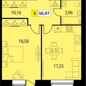 - Общая площадь: 51 м²