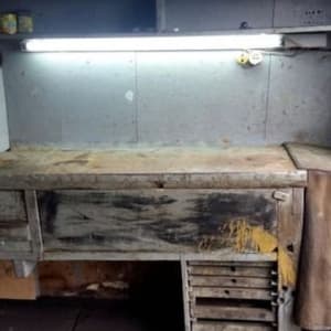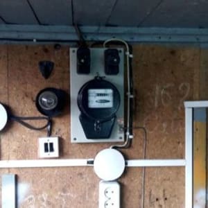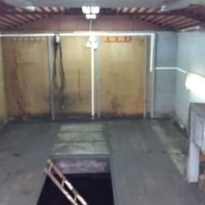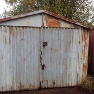 Гараж двускатный металлический, со смотровой ямой и электричеством. Оборудован верстаком и полками. Стены обшиты ДСП. Яма полноценная, во всю длину гаража, глубина ~1,5 метра. Частично прикрыта щитами. На воротах 2 внутренних замка и уши для 2х навесных. Два комплекта ключей.