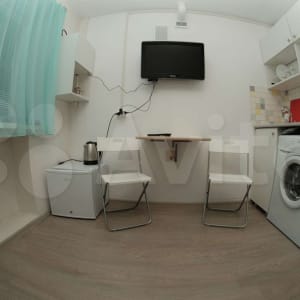 Студия со своим санузлом, мини-кухней и удобным диваном. Для проживания есть все необходимое: плита, микроволновка, стиральная машина, посуда, постельные принадлежности, фен, утюг, чайник и капсульная кофемашина, телевизор.